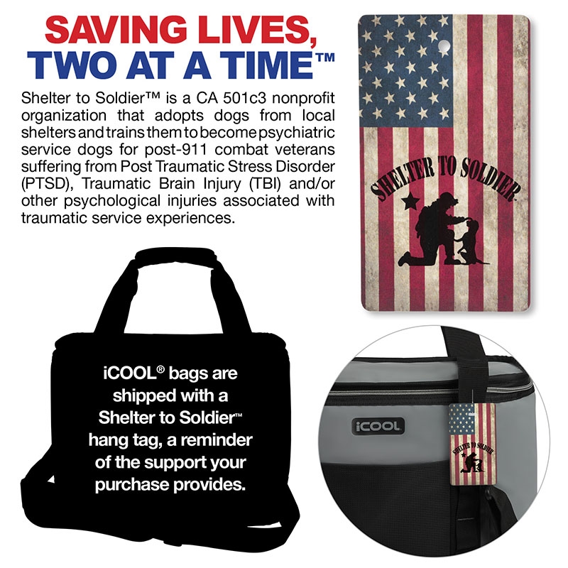The versatile iCOOL® Pinecrest 20-Can Cooler is perfect for sporting events, tailgating, picnics and more. It's rugged weather-resistant tarpaulin exterior and thick, high-density foam insulation with heat-sealed tarpaulin lining will keep your items well protected and cool or warm for extended periods of time. It features a front slip pocket for easy-access personal items, easy-pull T-Bar zip pulls, front side daisy chains and an attached bottle opener on the backside. Carry it with the padded carry handles or its included 1 3/4" x 52" removable and adjustable padded shoulder strap. Whether you're enjoying a cold beverage at a sporting event or keeping your food warm during a picnic, the Pinecrest 20-Can Cooler is up to the task. A portion of all proceeds is donated to Shelter to Soldier™, a non-profit organization that rescues dogs to train as service animals for veterans in need.